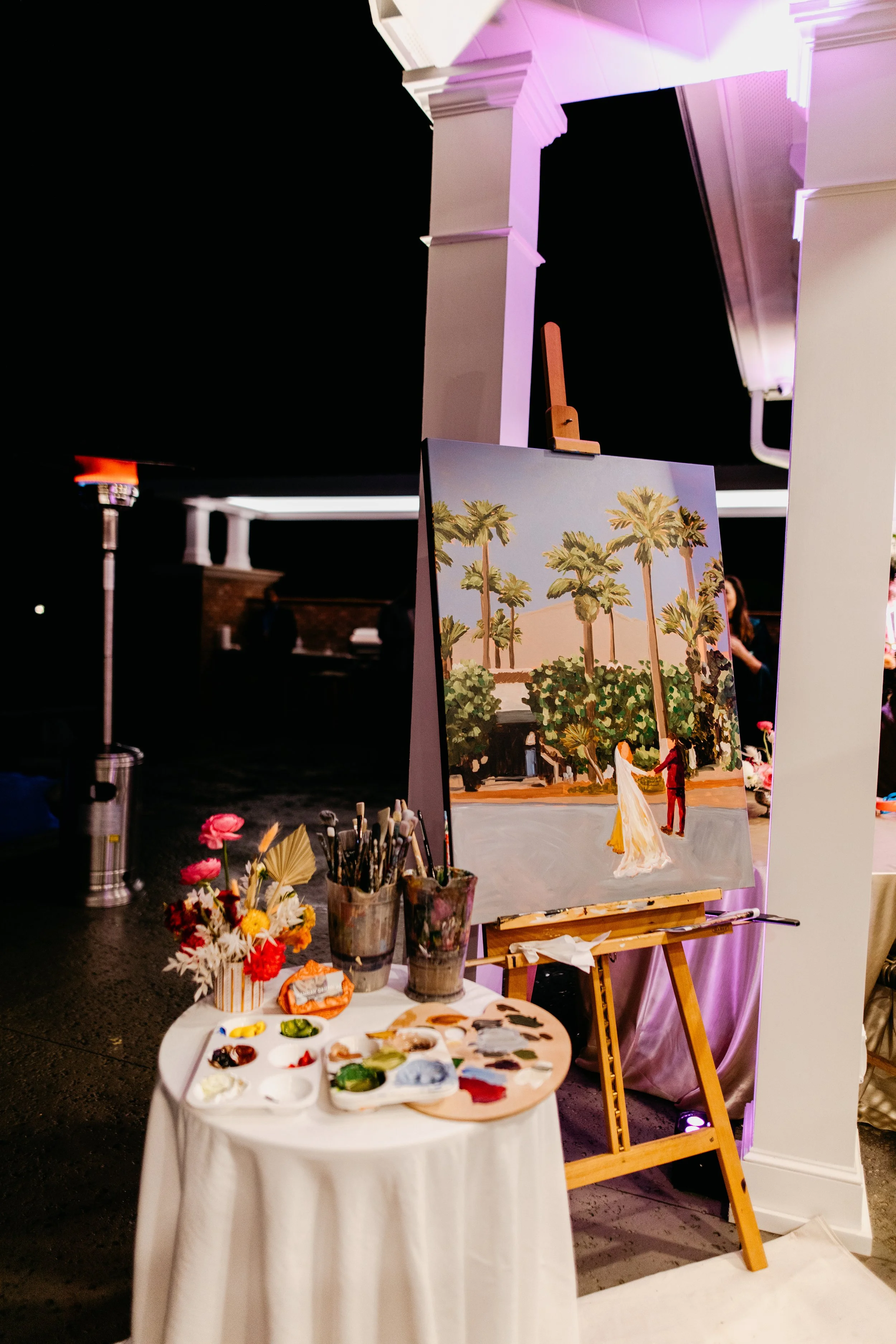 Your “first kiss” portrait, “first dance” during your wedding reception, or an image of the venue, captured on canvas for you in-the-moment. Live painting during your wedding reception or event invites guests to enjoy the painting process and leaves you with a custom piece to treasure for years to come.
